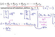 이전에 본적이 있는 일차방정식으로 표현이 된 h 함수입니다. 두개의 parameters를 가지고 있고 곱하기와 더하기로 표현이 되고 있습니다. 이것을 Matrix로 표현을 하면 아래쪽에 있는 그림과 같이 표현이 가능합니다.