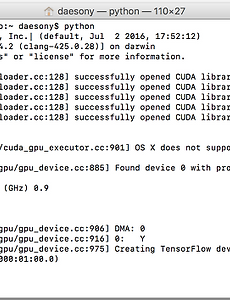 Tensorflow23 자유로운 가상환경에서 Pycharm 사용하기 (window, tensorflow, cpu/gpu) 이전 포스팅을 따라서 Anaconda와 tensorflow-gpu를 설치했다면, 로컬 가상환경에서 특정 환경을 생성하고 Pycharm에서 개발환경을 변경해가면서 개발 및 테스트를 해볼 수 있습니다. 이에 대한 문의도 주시고 계시고, 관련 포스팅이 없는거 같아서 올려보겠습니다. 이미지들은 클릭하면 확대됩니다. 처음 설치시 처음 설치하시는 분들은 아래 링크의 포스팅을 먼저 봐주세요 Window 에서 tensorflow-gpu 설치하기 Anaconda prompt를 실행 먼저 기본적인 설치가 되었다면 Anaconda prompt를 실행합니다. Anaconda 가상환경 목록 확인 실행하면 아래와 같이 콘솔 창이 열립니다. 현재 생성이 되어 있는 아나콘다 가상환경이 있는지 목록을 확인해 보기 위해서 아래 명령어를.. 2017. 4. 27. Tensorflow version 확인 설치되어 있는 텐서플로우 버전을 확인하는 방법입니다. $ python> import tensorflow as tf> tf.__version__'0.12.1' 정식버젼 업그레이드 했더니 안되는 것이 많아서 당분간은 두가지 버전 다 사용해야 할 것 같습니다. 2017. 1. 30. 21. Mac(맥북)에 Tensorflow(텐서플로) GPU 설치하기 맥북에서 Tensorflow GPU를 설치해보겠습니다. 최근에 출시되는 맥북에는 그래픽 카드가 Nvidia 제품이 아니므로 2015년 이전의 맥북에서만 가능한 방법이니 참고해주세요. 자신의 맥북에 그래픽 카드를 확인하시려면, 왼쪽 상단에 애플 로고를 클릭하시고 - 이 Mac에 관하여 - 시스템 리포트 - 그래픽/디스플레이로 이동하시면 사양을 확인할 수 있습니다. 설치 준비 1. CUDA 다운로드 https://developer.nvidia.com/cuda-toolkit 사용하고 있는 Mac OS 버전에 맞는 CUDA 8.0 설치 파일을 다운로드합니다.다운로드 하실때 로컬 설치 파일의 dmg(local)로 다운로드 하는 것이 좋습니다. 파일용량이 커서 원격으로 설치하는 것보다 빠르게 설치할 수 있습니다. .. 2017. 1. 27. 20. Windows(윈도우)에 Tensorflow(텐서플로) GPU 설치하기 Tensorflow v0.12 부터 Windows 지원 이번에 업데이트가 된 TensorFlow v0.12.0 RC1 에서부터 windows OS에서도 Tensorflow를 사용이 가능하도록 지원이 되었습니다. (현재 2017년 7월 최신버전은 1.2버전입니다) https://developers.googleblog.com/2016/11/tensorflow-0-12-adds-support-for-windows.html?1480466252369=1 아주 편리하고 쉽게 설치가 가능해졌고, Nvidia 그래픽 카드를 이용한 GPU도 마음것 사용이 가능하게 되었습니다. 이제부터 Windows 로컬 PC에 설치하는 방법에 대해서 정리를 해보겠습니다. 사진들은 클릭하면 확대됩니다. 설치준비 - 파일 다운로드 ANAC.. 2016. 12. 18. 19. Tensorflow 시작하기 - word2vec 이번에는 텍스트로 사용되는 언어를 처리하는(Language Processing) 방법에 대한 튜토리얼을 살펴보겠습니다. 이번 튜토리얼의 링크는 다음과 같습니다 원문 : https://www.tensorflow.org/versions/master/tutorials/word2vec/index.html한글 : https://tensorflowkorea.gitbooks.io/tensorflow-kr/content/g3doc/tutorials/word2vec/소스 : https://github.com/tensorflow/tensorflow/blob/r0.11/tensorflow/examples/tutorials/word2vec/word2vec_basic.py Distributional hypothesis 언어를 .. 2016. 11. 28. 18. Tensorflow 시작하기 - Convolutional Neural Networks (이미지 프로세싱) 이번에는 이미지를 인식하기 위해서 많이 사용되는 CNN 모델에 대해서 살펴보겠습니다. Deep CNN 튜토리얼 링크는 다음과 같습니다(https://www.tensorflow.org/versions/master/tutorials/deep_cnn/index.html#convolutional-neural-networks)튜토리얼 문서에서 'tensorflow/models/image/cifar10' 로 되어 있는 링크에서 최신본의 전체 소스를 다운로드 할 수 있습니다. 다운로드 받으신 파일들중에서 'cifar10_train.py' 파일을 실행하면 기초 데이터를 다운받고 학습을 진행하게 됩니다. 이번에는 많은 이미지들을 학습해야 하기 때문에 서버 사양에 따라 빠르면 4~5시간에서 많게는 몇일이 걸릴수도 있으니 .. 2016. 11. 20. 17. Tensorflow 시작하기 - Estimator 지금까지 우리는 기본적으로 제공되고 있는 tf.contrib.learn 의 알고리즘 API들을 그대로 사용하여 학습을 시키고 loss를 구하고 평가를 하였습니다. LinearClassifier: Constructs a linear classification model.LinearRegressor: Constructs a linear regression model.DNNClassifier: Construct a neural network classification model.DNNRegressor: Construct a neural network regressions model. 그런데 우리의 목적에 맞게 조금 변형하고 보완하여 사용하고 싶을 때나, 혹은 다른 종류의 알고리즘을 사용하고 싶을 경우에는 이러.. 2016. 11. 19. 16. Tensorflow 시작하기 - input function 이번에는 tf.contrib.learn 에 있는 input functions를 생성하는 방법에 대해서 알아보겠습니다.input_fn을 사용하면 모델에 preprocess를 처리하거나 data를 feed 하는데 유용하게 사용할 수 있습니다. Custom Input Pipelines with input_fn tf.contrib.learn을 사용해서 neural network 학습을 진행할때 우리는 feature와 target data를 직접적으로 fit, evaluate, predict ops에 사용하였습니다. tf.contrib.learn quickstart 의 예제를 통해서 보았던 방법인데 이러한 접근방식은 source data가 완벽하여 추가 보정같은 것이 필요하지 않을때만 사용이 가능합니다.하지만, .. 2016. 11. 14. 15. Tensorflow 시작하기 - Logging & Monitoring 이번에는 Tensorflow를 이용해서 모델을 학습하는 알고리즘을 구현할 때,Tensorflow의 로깅하는 기능과 모니터링 할때 사용하는 api에 대해서 알아